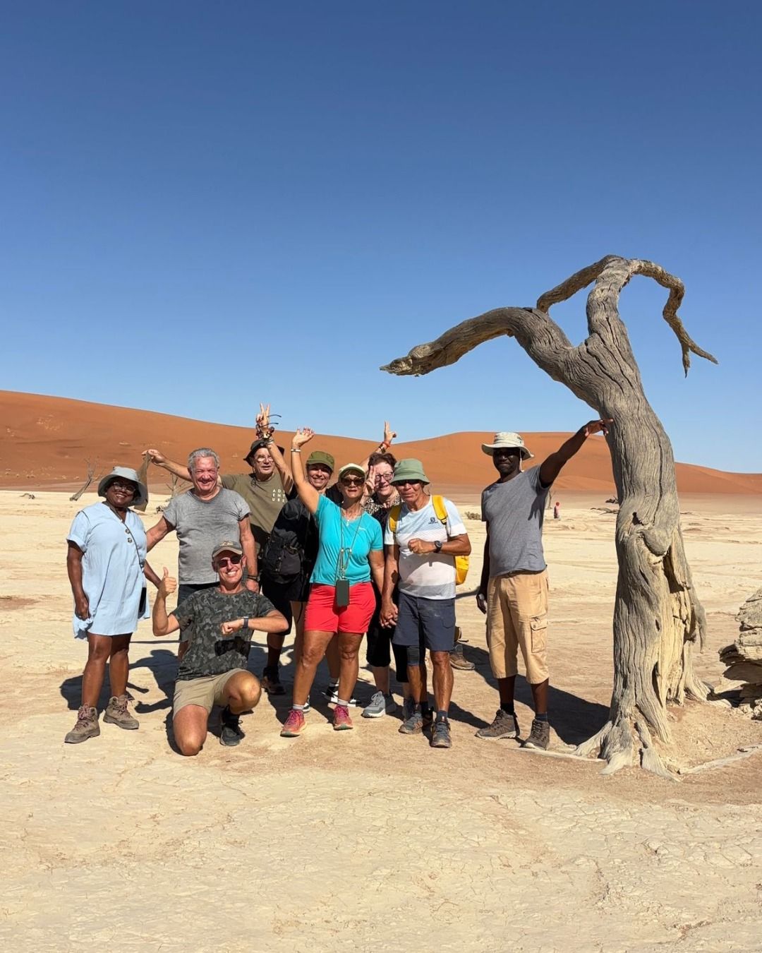 So far the group has explored some of the region’s most iconic landscapes — Dune 45, Big Daddy, Sesriem Canyon, and the famous Deadvlei. Endless dunes, ancient trees, and those incredible desert colours that make Namibia so special.